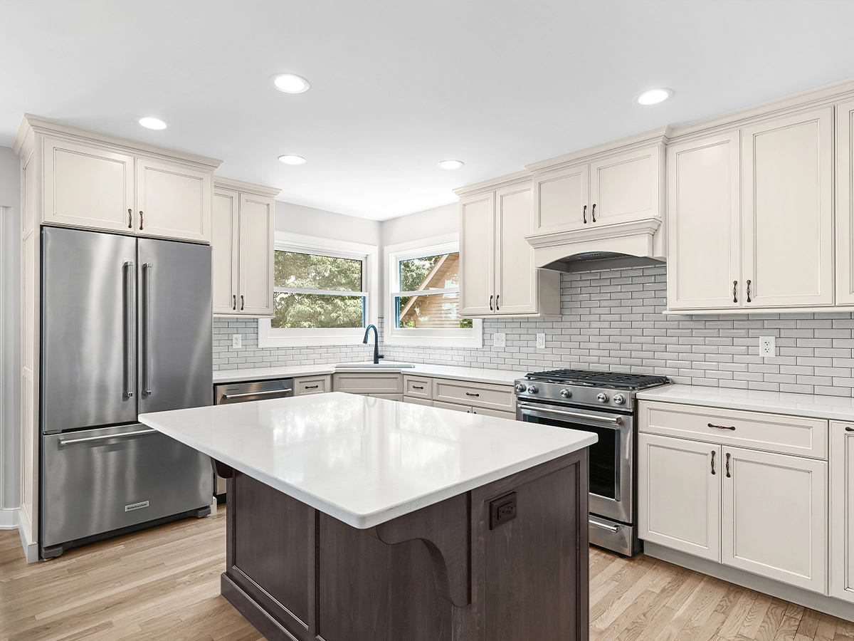 Get new custom cabinets, premium quartz or granite tops, or a backsplash that brings that WOW factor in your new kitchen!